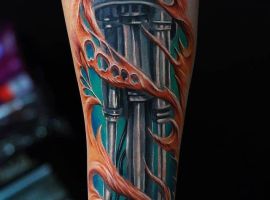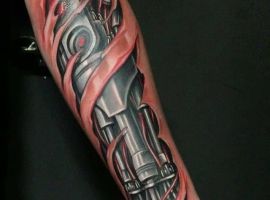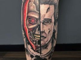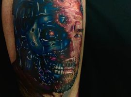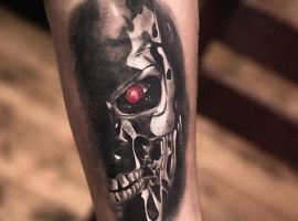Стиль тату, який найбільш точно підходить для втілення на шкірі образу Термінатора -це біомеханіка. Його характеризує з’єднання людської плоті і механічних деталей. Власне, саме таки і був герой – всередині механічний робот, а зовні – жива людина.