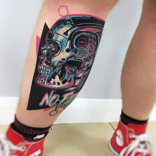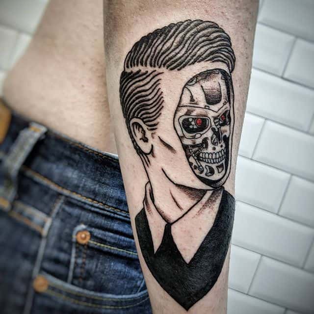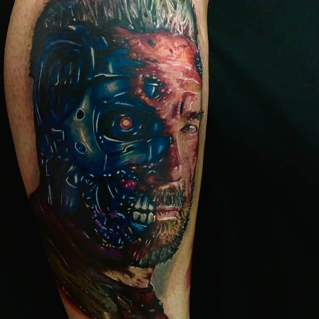 Стиль тату, який найбільш точно підходить для втілення на шкірі образу Термінатора -це біомеханіка. Його характеризує з’єднання людської плоті і механічних деталей. Власне, саме таки і був герой – всередині механічний робот, а зовні – жива людина.