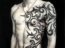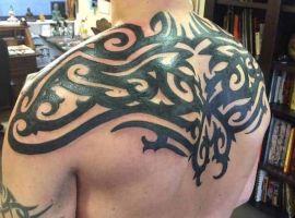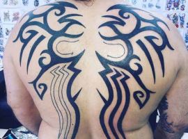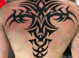 Трайбл на лопатках, грудях або шиї зі суворою симетрією і чіткістю ліній – особливості, властиві цій стилістиці. Виконують трайбл тату значення оберегів, як і інші символічні зображення.