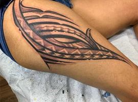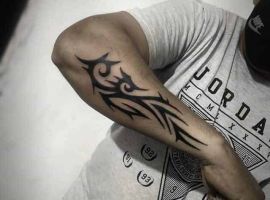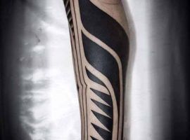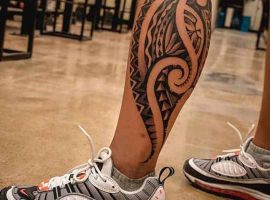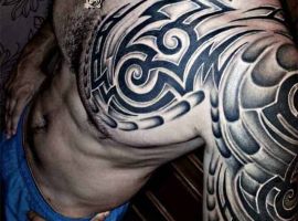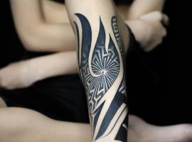 Етнічні геометричні візерунки з безліччю вигинів, чорного або сірого кольору, заховані всередині малюнка символи і зображення звірів, птахів. Кожен елемент має своє значення. Все це – трайбл татуювання, один з найвідоміших сьогодні. У цьому напрямку створюється не просто малюнок на шкірі, а втілення особистої філософії власника.