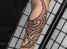 Чоловіки часто роблять татуювання на передпліччі, плечі. Красиво виглядає композиція на всю руку – рукав зі складно переплетених ліній. За допомогою таких ідей хочуть підкреслити свою силу, жорсткість, мужність, непохитний дух. Тому сильна стать віддає перевагу строгим орнаментам в чорних тонах і зображенням хижаків.