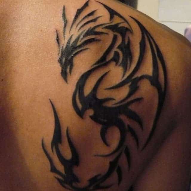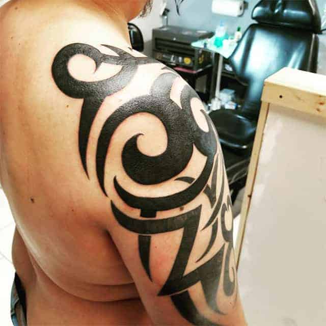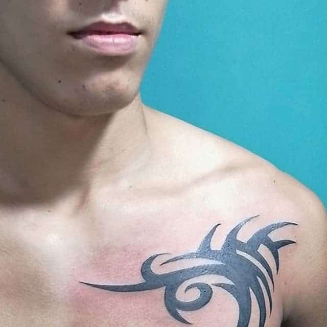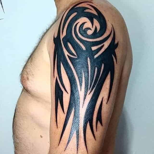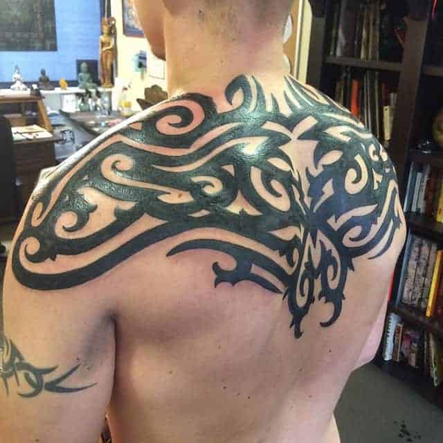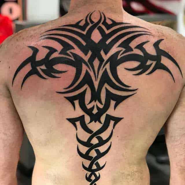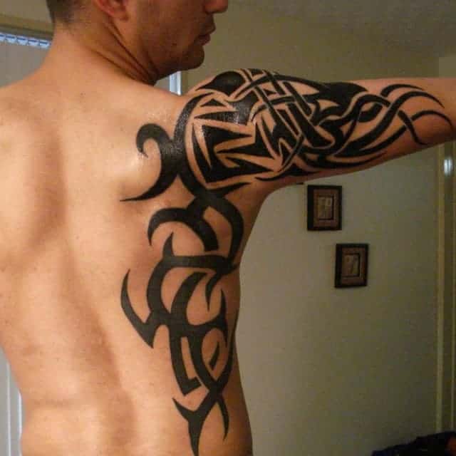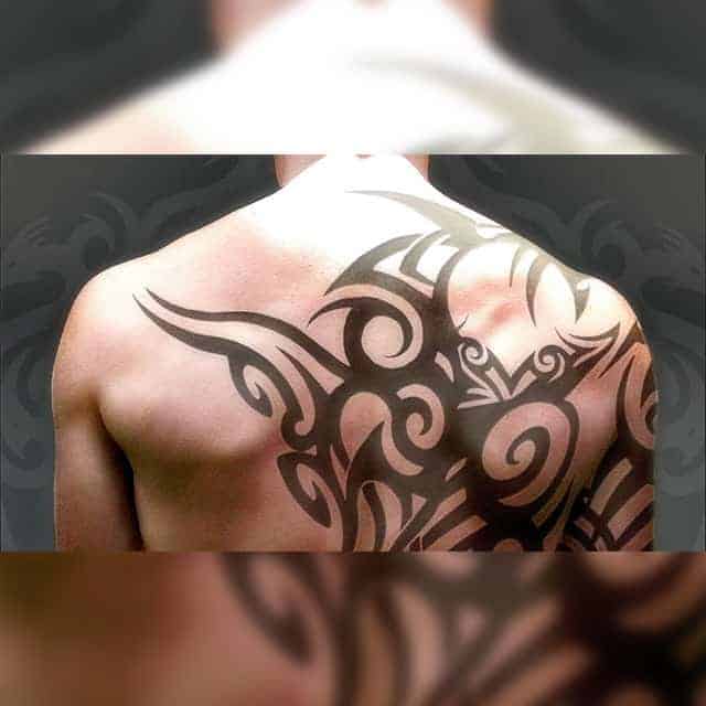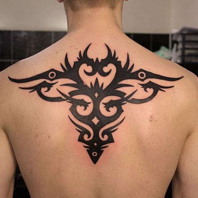 Трайбл на лопатках, грудях або шиї зі суворою симетрією і чіткістю ліній – особливості, властиві цій стилістиці. Виконують трайбл тату значення оберегів, як і інші символічні зображення.