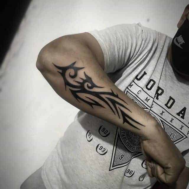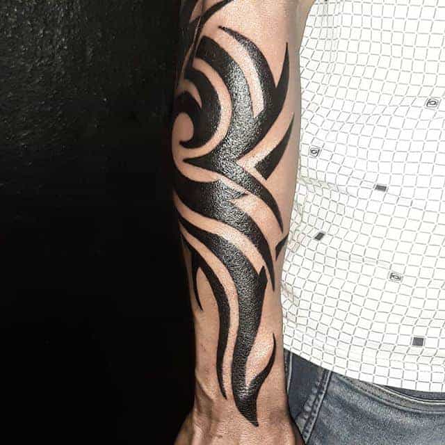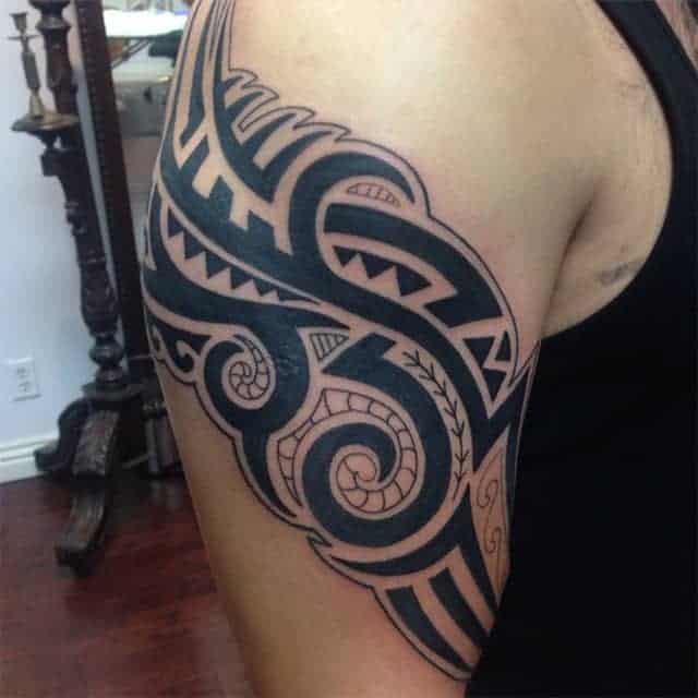 Чоловіки часто роблять татуювання на передпліччі, плечі. Красиво виглядає композиція на всю руку – рукав зі складно переплетених ліній. За допомогою таких ідей хочуть підкреслити свою силу, жорсткість, мужність, непохитний дух. Тому сильна стать віддає перевагу строгим орнаментам в чорних тонах і зображенням хижаків.
