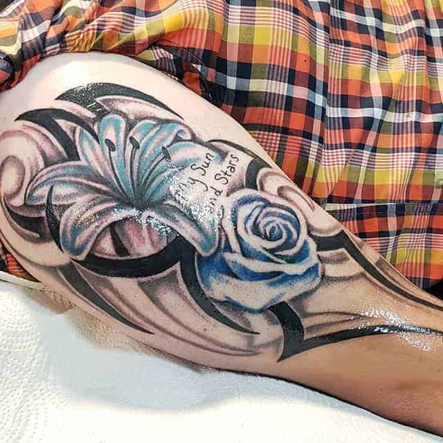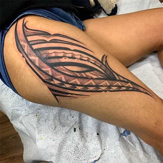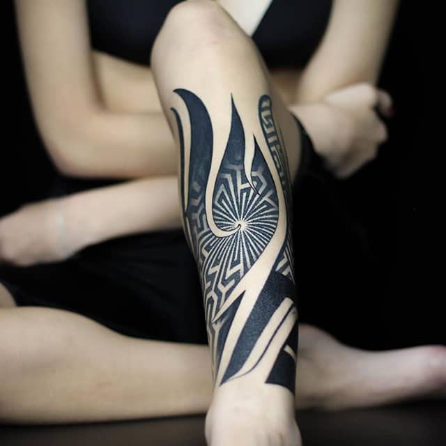 Етнічні геометричні візерунки з безліччю вигинів, чорного або сірого кольору, заховані всередині малюнка символи і зображення звірів, птахів. Кожен елемент має своє значення. Все це – трайбл татуювання, один з найвідоміших сьогодні. У цьому напрямку створюється не просто малюнок на шкірі, а втілення особистої філософії власника.