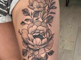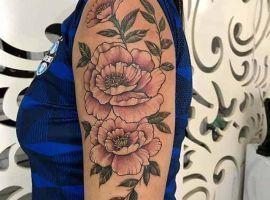 Другі за популярністю-тату півонії. Ці квіти красиві, символічні, і універсальні. Значення півонії: удача, багатство, процвітання. Татушки з ними допоможуть залучити успіх у всіх сферах.