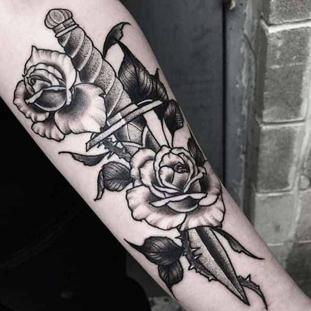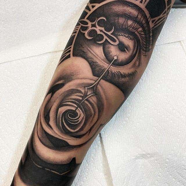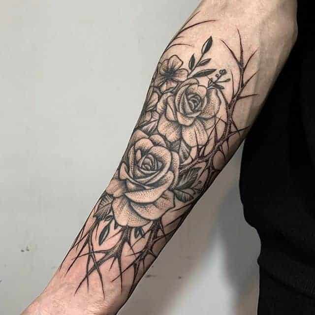Звичайно, рекордсмен серед тату квітів-троянда. По-перше, вона красива естетично, і складно знайти того, кому вона б не подобалася. Значення татуювання з трояндою: пристрасть, любов, як до людини, так і до життя, до всього світу. Також значення полягає у внутрішній чистоті, доброті, прагненні до хорошого. А якщо вона зображена з шипами, то їх значення – вміння людини постояти за себе, внутрішній стрижень і сильний характер.