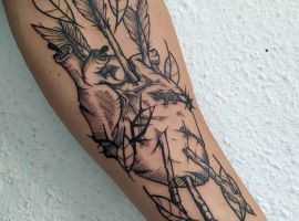 - Стріла – символ наполегливого прагнення вперед. Татуювання вказує на сміливу, напористу і амбітну натуру.