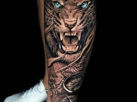 - Лев – безсумнівний символ впевненості, лідерства, сили духу. Татуювання робить володаря щасливим і статусним.
