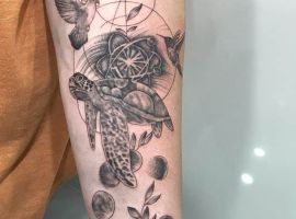 - Слон – благородна тварина, яка обіцяє щастя і благополуччя, завдяки терпінню, витривалості, завзятості. Тату може вказувати на щедрість і успішність.