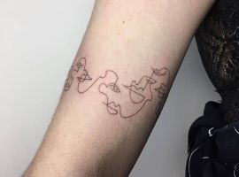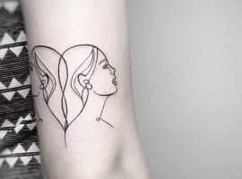 Часто замовляють парні тату однією лінією. Вони відмінно підходять для хлопця і дівчини. Справа в тому, що пара може зробити навіть різні татуювання в такому стилі, і зрозуміти сенс вийде тільки якщо з’єднати два зображення.