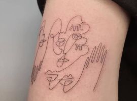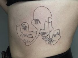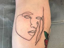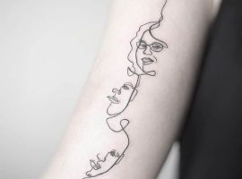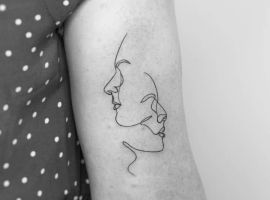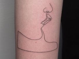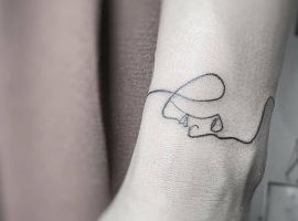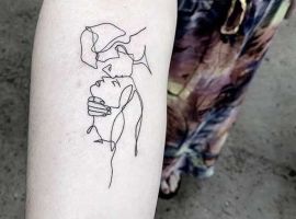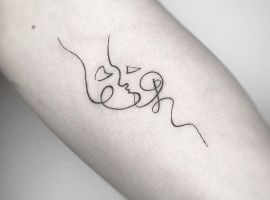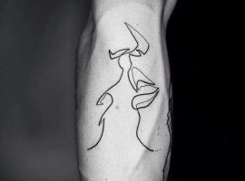Поцілунок тату однією лінією просто заворожує! Така тату однією лінією підкреслить загадковість і швидкоплинність моменту і, звичайно, романтичність. Тату однією лінією поцілунок у вигляді губ або сблизившихся осіб – зараз найпопулярніша ідея в даному стилі!