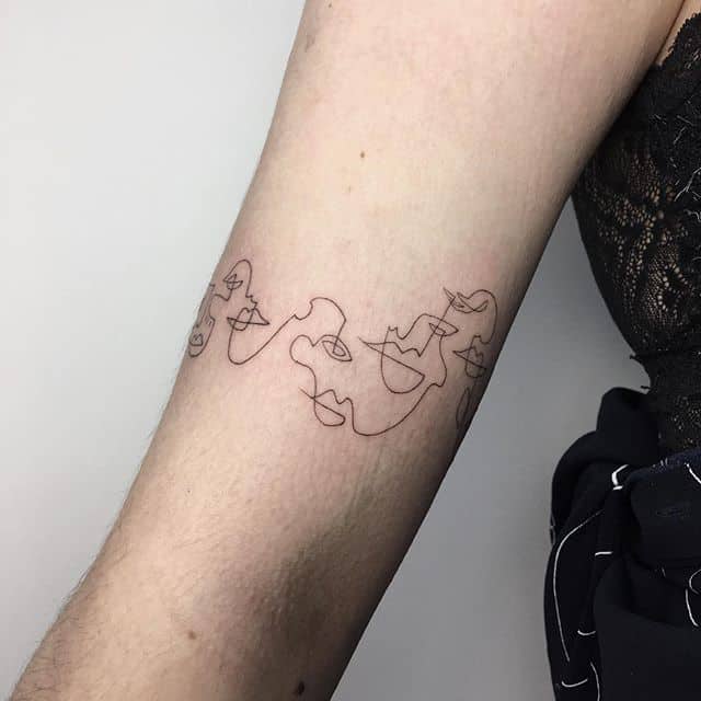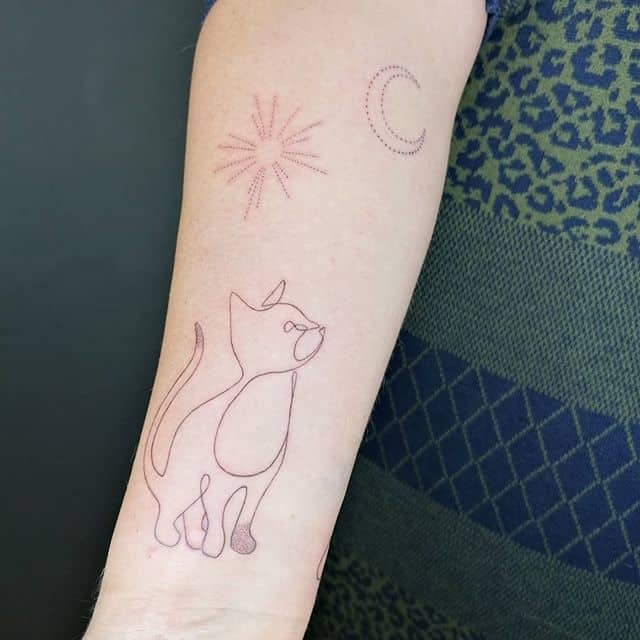 Відмінною особливістю такого тату є симбіоз ліній, які розміщені можуть бути різними способами. Це паралелі, перетину, різні геометричні фігури … Завдяки цим хитросплетіннях однієї безперервної лінії можна отримати як лаконічні ескізи, так і цілі композиції з сюжетною лінією.