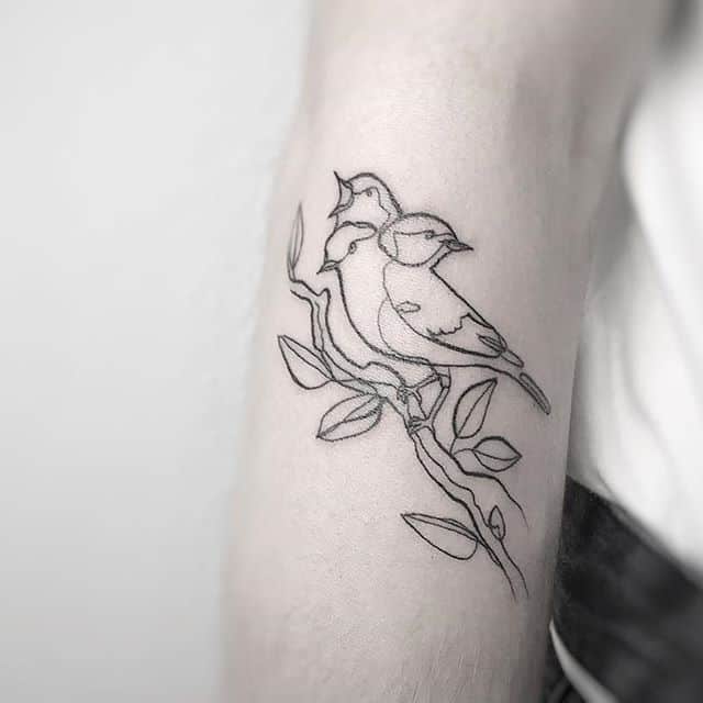 Часто замовляють парні тату однією лінією. Вони відмінно підходять для хлопця і дівчини. Справа в тому, що пара може зробити навіть різні татуювання в такому стилі, і зрозуміти сенс вийде тільки якщо з’єднати два зображення.