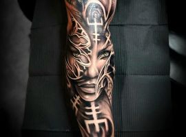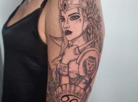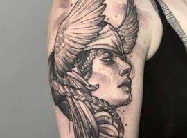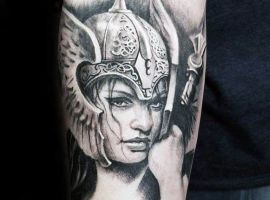 Валькірія – войовниця, відома всьому світу зі скандинавської міфології. Вона символізує сміливість і відвагу, оберігаючи воюючих за свою територію. Хоробрі Валькірії були супроводжуючими бога Одіна, допомагаючи переносити душі загиблих солдатів в Вальхаллу. Якщо полеглі воїни проявили відвагу в ратній битві, вони удостоювалися потрапити в рай і бенкетувати. Згідно скандинавським повір’ями, ці покровительки чинили сильний вплив на життя майбутнього воїна з народження. Від їхньої волі залежало, хто повернеться з поля бою, а хто – впаде замертво. А яке ж значення Валькірія татуювання.