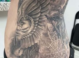 Стилі виконання тату. Найкращий стиль для нанесення Валькірії – реалізм. Якщо віддати перевагу монохромній техніці, то натільний малюнок буде походити на картинку із старовинної книжки.