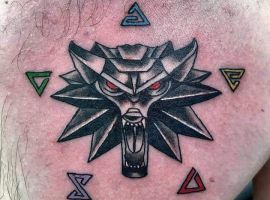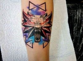 Тату у вигляді медальйона Геральта являє собою зображення образу вовка або перевертня. Малюнок означає здатність протистояти нападкам ворогів, агресію, силу. Наносити його зазвичай вважають за краще чоловіки. Хоча зрідка можна зустріти Його і у жінок.