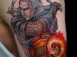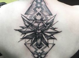 Знаменитий польський серіал «Відьмак», створений за творами письменника Фентезі Анджея Сапковського, став причиною популярності однойменного татуювання Відьмак.