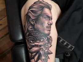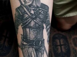 Деякі роблять тату з іншою героїнею серіалу – Йенніфер. Чарівниця пройшла непростий шлях від дівчини-виродка, над якою всі знущалися, до могутньої і прекрасної чаклунки. З Геральтом її пов’язувала любовна симпатія.