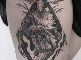 Тому його зображення є символом справжніх чоловічих якостей і настільки популярно серед шанувальників тату. Наші майстри салону Альянс в Києві створюють персональні ескізи на замовлення для кожного бажаючого клієнта.