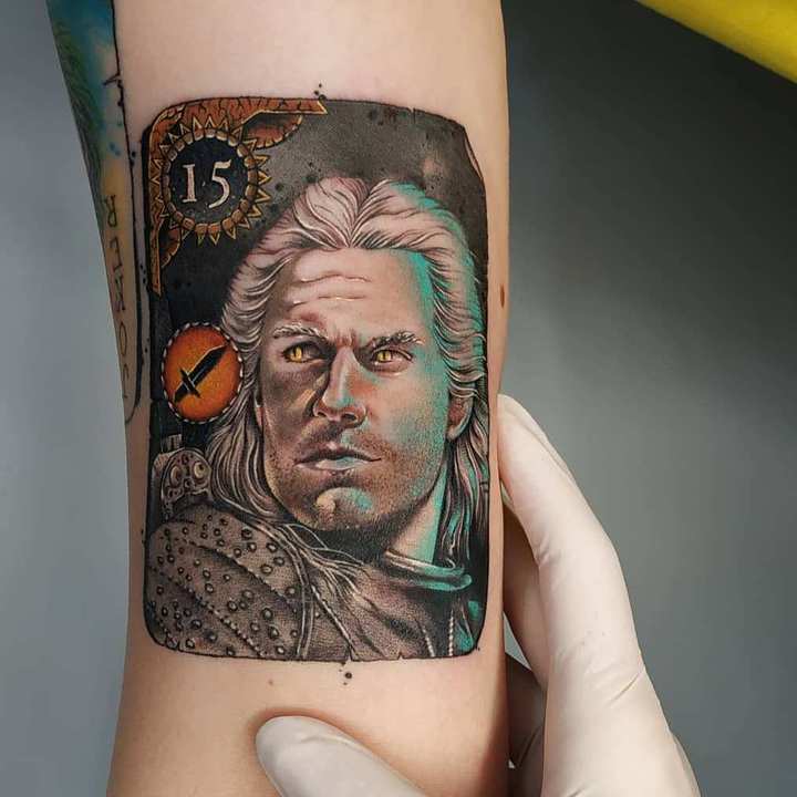 Деякі роблять тату з іншою героїнею серіалу – Йенніфер. Чарівниця пройшла непростий шлях від дівчини-виродка, над якою всі знущалися, до могутньої і прекрасної чаклунки. З Геральтом її пов’язувала любовна симпатія.