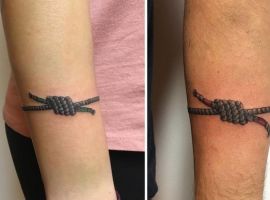 Особливо така ідея підійде для парних тату двох коханих. З іншого боку, прихильність може бути до чогось іншого: до якогось переконання або угруповання. Можна процитувати відому пісню: “скуті одним ланцюгом, пов’язані однією метою”. Люди, які об’єднані якоюсь ідеологією, поглядами, переконаннями або метою, ніби пов’язані мотузкою. Тому такі тату для членів даної групи, будуть ніби міткою приналежності і нагадуванням про найважливіше.