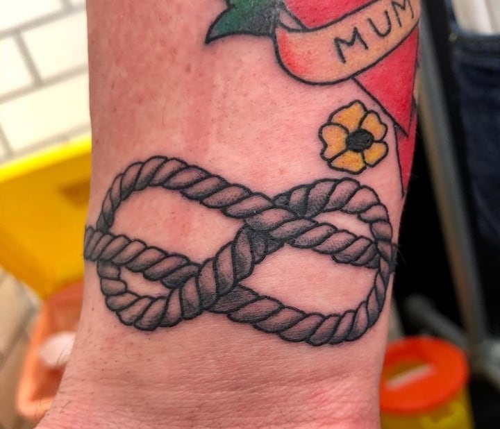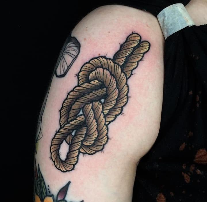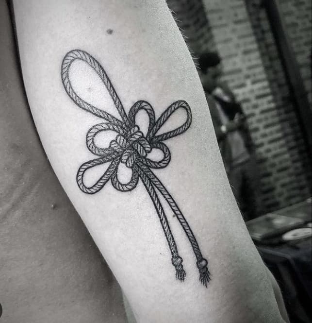 Насправді, значення татуювання мотузка або петля криється на поверхні, в самому застосуванні цього предмета. Що роблять з її допомогою? Пов’язують! Таким чином, символічно мотузка та вузол на шкірі буде говорити про якусь прихильність свого власника. Наприклад, це може бути про закоханість, любов. Людина, за допомогою такого малюнка, говорить про те, що прив’язана до іншої людини.