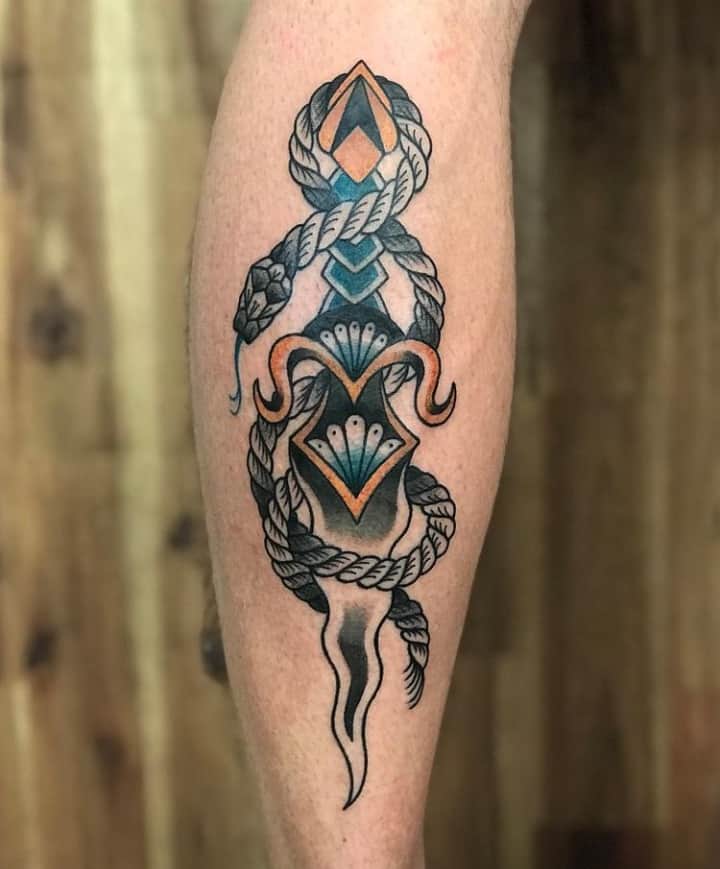 Найчастіше в тату мотузку зображують в стриманому чорно-білому вигляді, а тому ідея більш чоловіча і серйозна.