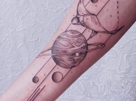Космічна тематика дуже популяризується останнім часом. Різні комікси, книги, фільми, серіали. Часто у всьому цьому йдеться саме про космос і Всесвіт. І, зрозуміло, що розмови про подорожі в далекі космічні простори заворожують мільйони людей. Як наслідок – любов до космічної тематики, зокрема, і до татуювань, які якимось чином пов’язані з нею. Татуювання Всесвіт, тату Галактика може бути яким завгодно, починаючи від зображення космонавта і закінчуючи масштабною композицією у фантазійному стилі планет Сонячної системи. Звичайно, майстри тату салону Альянс в Києві з радістю втілять в реальність навіть найсміливіші ваші фантазії з приводу ідеї татуювання в реальність!