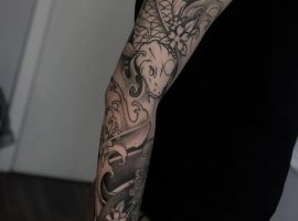 Головна відмінна риса тату в японському стилі – глибокий символізм. Кожна деталь малюнка, будь то квітка, завиток або цілий дракон, не просто красиво виглядає, але має свою історію і сенс.