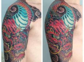 1. Дракон. В японській культурі, на відміну від західної традиції, тату дракона несе виключно позитивне значення. Вважається, що міфічна істота тісно пов’язана з водною і повітряною стихіями – головними благодійниками острівної держави. Малюнок з драконом здатний служити оберегом і надавати його носію сил.
