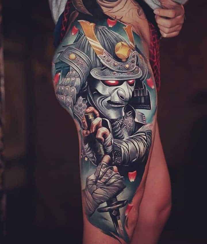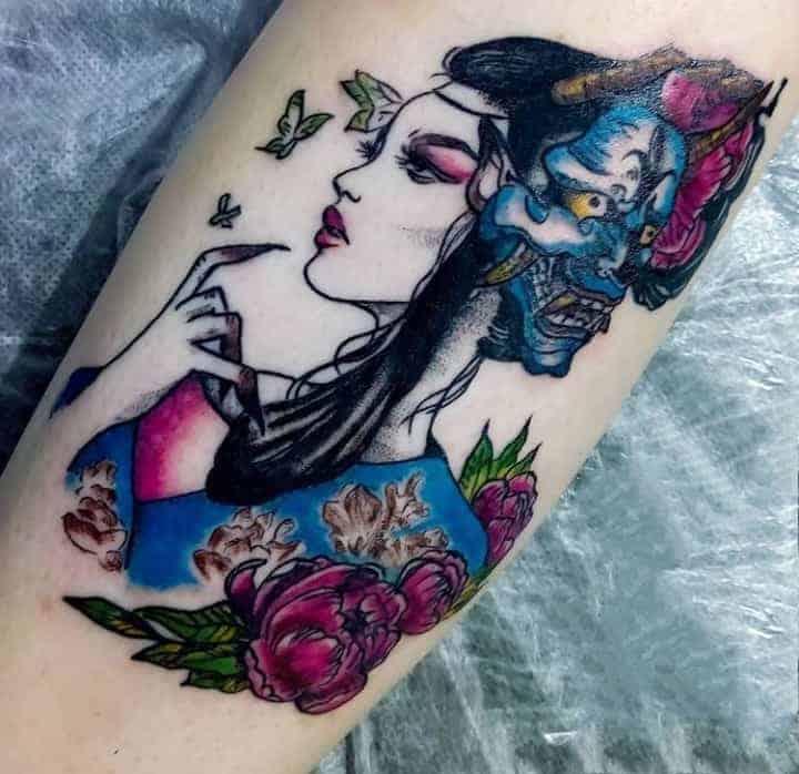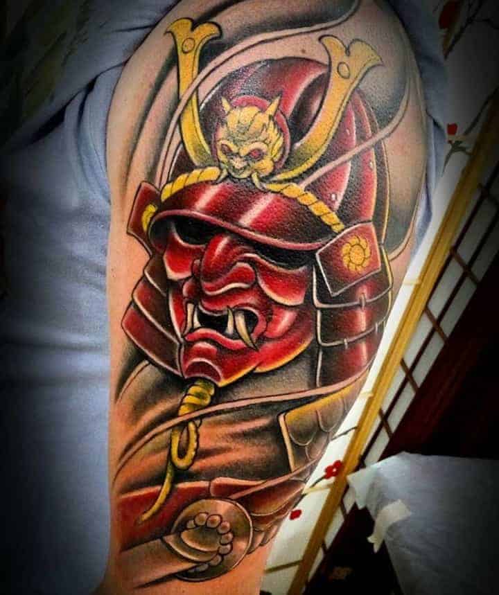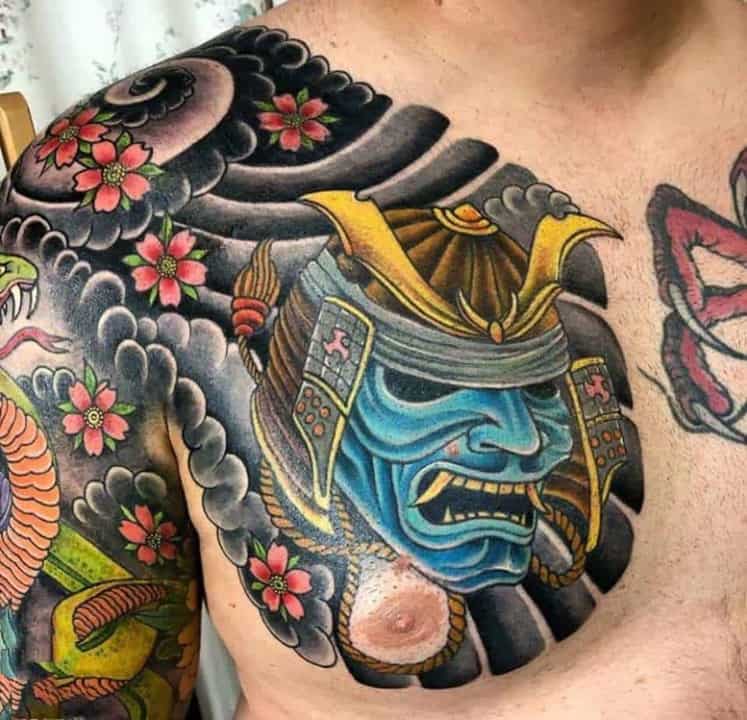 Тату Японські відрізняються щільним декоративним контуром, окільцьовують окремі значущі елементи малюнка. Майстри вважають за краще використовувати контрастні кольори. Конкретний відтінок також має значення. Жовтий вважається імператорським кольором, символізує владу і золото, а демонів прийнято зображати в червоному або сірому кольорі. Рожевий, як квітки сакури, позначає гармонію, а Блакитний висловлює духовність.