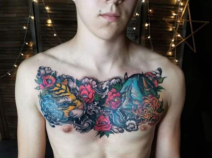 3. Тигр. Вважається, що традиційне зображення тигра захищає володаря від невдач і хвороб. Тигр в стилі тату Орієнтал виражається як символ сили, хоробрості і стійкості.