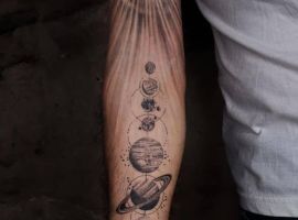 Саме на честь цього бога і була названа величезна планета Сонячної системи Юпітер. До того ж, існує також думка, що кожна з планет має особливий зв’язок зі знаками зодіаку і гороскопами. До речі, це також є однією з найактуальніших і затребуваних тематик при виборі татуювання. Тому для тату-майстрів завжди досить цікаво фантазувати і поєднувати в одному ескізі кілька напрямків, пов’язаних зі знаком Юпітера.