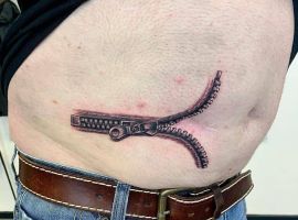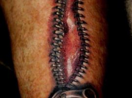 - 3-мірне татуювання блискавки. Застібка – ідеальний варіант тривимірного татуювання, яке може виглядати неймовірно реалістичною завдяки ретельній штриховці і кольорам, що надає дизайну піднесений вигляд. Цей метод ідеально підходить для того, щоб зробити існуючий шрам ще більш грубим, якщо це мета клієнта, але це також спосіб, зробити будь-який дизайн привабливішим.