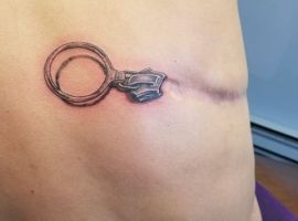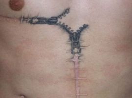 Творчі натури люблять доповнювати тату застібок фразами з пісень і віршів, які їм особливо дорогі, несуть для них певний глибинний сенс. Щоб виділити неприборкану частину своєї особистості, використовуються зображення диких звірів, щоб сказати про волелюбність – ширяючий в небі птах. Варто підкреслити, що хоча з першого погляду, тату здається простим в реалізації, робота над ним є досить трудомісткою. Зображення повинно ідеально підходити за розміром шраму, і бути правильно розташоване, щоб татуювання не виглядало безглуздо.