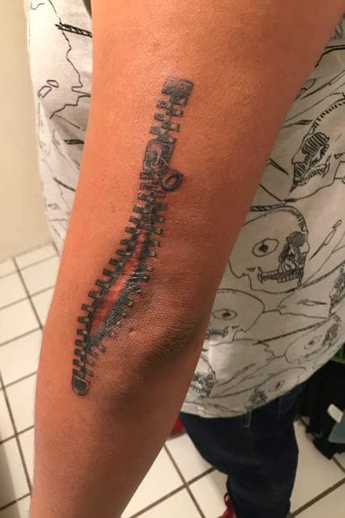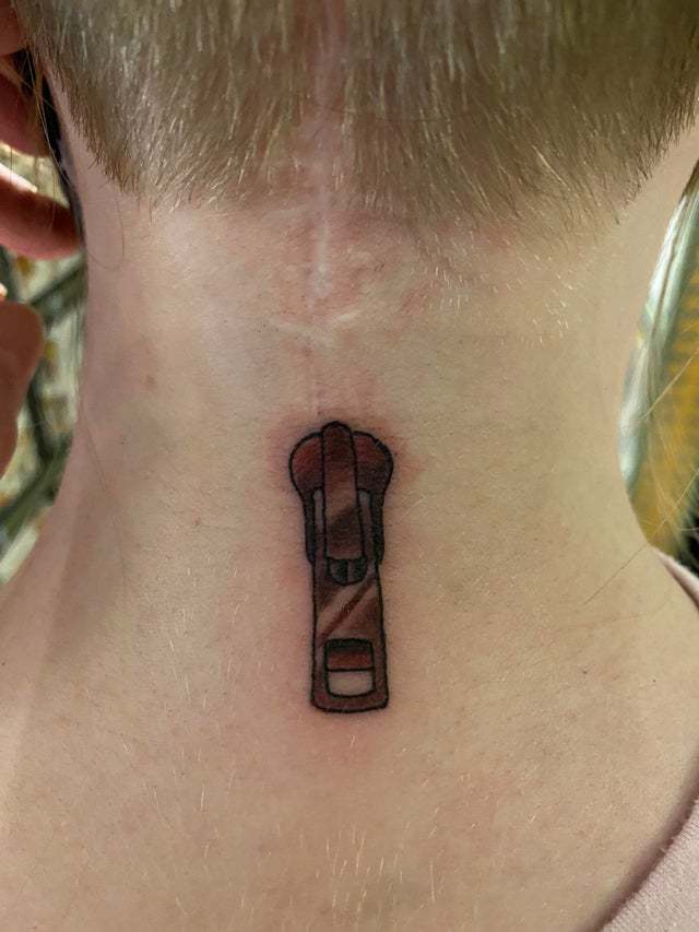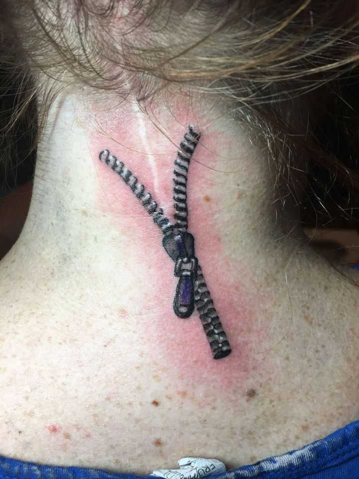 Тату застібок блискавок почали набувати популярності порівняно недавно, в більшості випадків, їх наносять, щоб замаскувати шрам. Татуюванням перекривають пошкоджену ділянку шкіри, якщо розмір рани великий – в центрі так само наноситься зображення. Люди наносять подібні тату, щоб замаскувати каліцтва, зробити шкіру на тому місці більш привабливою і красивою. Єдиним мінусом подібних зображень, є те, можна робити тату тільки на повністю заживших шрамах, яким більше року.