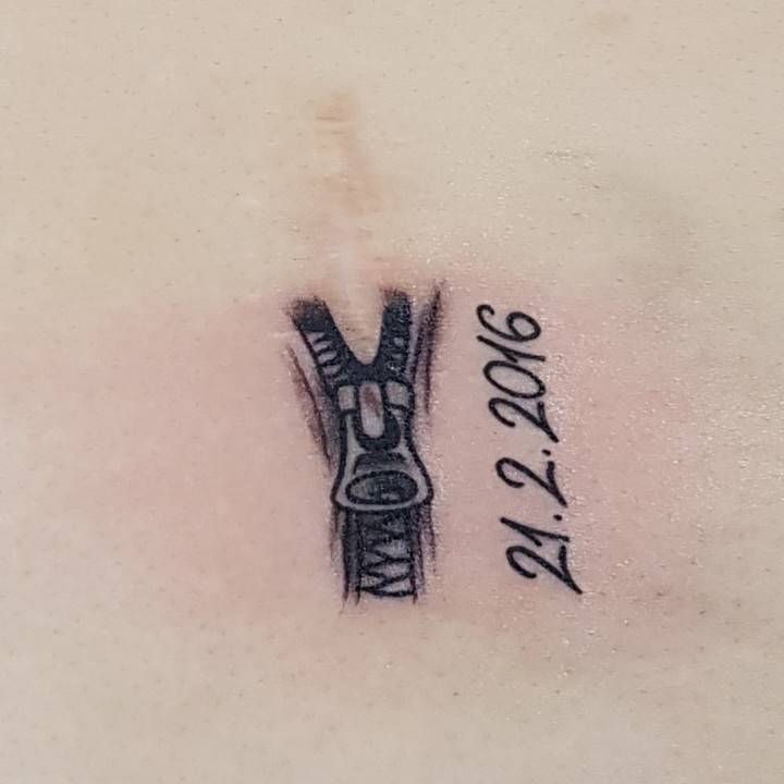 Творчі натури люблять доповнювати тату застібок фразами з пісень і віршів, які їм особливо дорогі, несуть для них певний глибинний сенс. Щоб виділити неприборкану частину своєї особистості, використовуються зображення диких звірів, щоб сказати про волелюбність – ширяючий в небі птах. Варто підкреслити, що хоча з першого погляду, тату здається простим в реалізації, робота над ним є досить трудомісткою. Зображення повинно ідеально підходити за розміром шраму, і бути правильно розташоване, щоб татуювання не виглядало безглуздо.