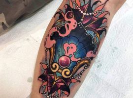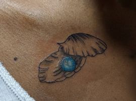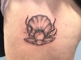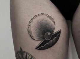 Жемчужница, тату ракушка з дорогоцінним камінчиком стане уособленням багатого внутрішнього світу людини, який він не любить показувати оточуючим. Але його найближчі люди можуть побачити дорогоцінні таланти і чисту, глибоку душу.
