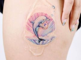 Також можна створити образ морської богині, з перлами всередині. Виглядають такі натільні малюнки дуже витончено, а наносити їх варто на жіночних місцях: на ключиці, на щиколотці або під грудьми. Дуже цікаво виглядають татуювання у вигляді перлинних браслетів на зап’ясті. А особливо сміливі наносять тату намисто.
