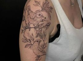 Тату на плечі і передпліччя – теж шикарний варіант. Виконуючи татушку на плечі майстру буде, де «розгулятися», тому зображення можуть бути досить масштабними. Плюс татушки на плечі і на передпліччі, як в цілому і на руці, в тому, що вони легко ховаються рукавами одягу.