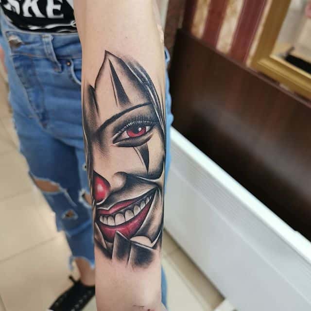 Тату на плечі і передпліччя – теж шикарний варіант. Виконуючи татушку на плечі майстру буде, де «розгулятися», тому зображення можуть бути досить масштабними. Плюс татушки на плечі і на передпліччі, як в цілому і на руці, в тому, що вони легко ховаються рукавами одягу.