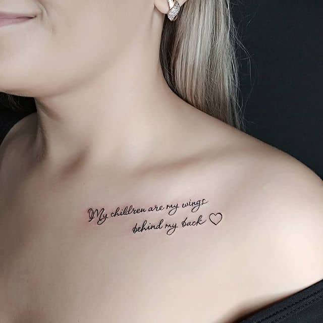 Написи. Це популярний напрям як у молодих дівчат, так і у жінок після 40 років або 45 років. Таке татуювання – це відображення внутрішнього світу, життєве гасло. Зазвичай жінки наносять цитати відомих людей, слова з улюбленої пісні, імена або дати народження своїх дітей і близьких.