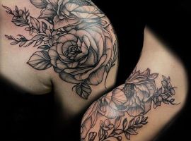 Для дівчат квіти завжди займають особливе місце в серці. Вони символізують справжнє втілення жіночності, а також асоціюються з ніжністю і крихкістю. Найпопулярніші варіанти зображень – троянда і сакура. Жіноче тату троянда на плечі давно вплелося в цю культуру, за рахунок того, що завдяки художнім творам придбало різні відтінки символічного сенсу. Малюнок троянди може бути і у казкової розбійниці, і у невинної принцеси.