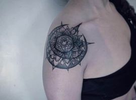 - Коло – символ вічного повторення і балансу природи. Втілює в собі сонячне світло, білосніжну красу Місяця, циклічність часу (згадайте про циферблат і гороскоп), протилежні початку інь і ян. Коло однаково виглядає з усіх боків, спереду і ззаду. Залежно від інших елементів, татуювання на плечі набуває все більш і більш цікавих значень.