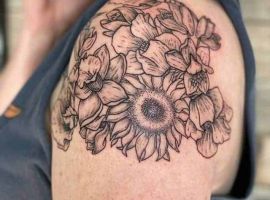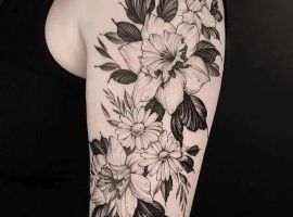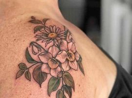 Головне значення тату на плечі у дівчат з квітами – це відданість любові, радості, свіжості, єднанню і життєвій силі. Але в залежності від сенсу, який закладає в малюнок власниця, татуювання може символізувати і розбите серце. Або скорботу від втрати близької людини. У мистецтві натільних малюнків кожен елемент володіє унікальним значенням.