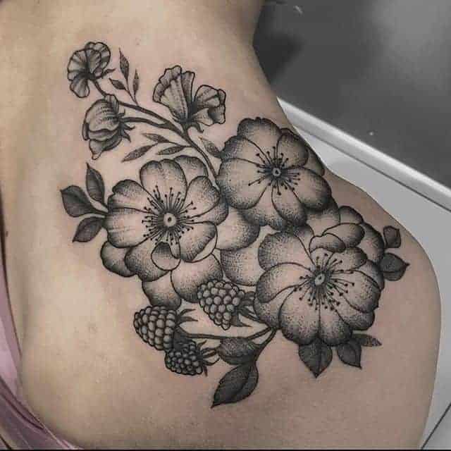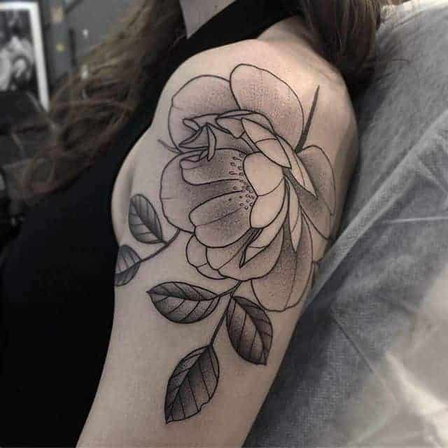 Для дівчат квіти завжди займають особливе місце в серці. Вони символізують справжнє втілення жіночності, а також асоціюються з ніжністю і крихкістю. Найпопулярніші варіанти зображень – троянда і сакура. Жіноче тату троянда на плечі давно вплелося в цю культуру, за рахунок того, що завдяки художнім творам придбало різні відтінки символічного сенсу. Малюнок троянди може бути і у казкової розбійниці, і у невинної принцеси.