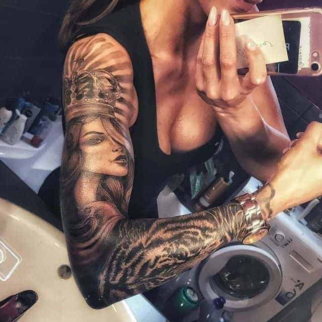 Жіночі татуювання на плечі з тваринами означають перш за все ті якості, які хотіла позначити носійка зображення. Символами, що закладаються в вигляд звіра, його фізичними і розумовими здібностями. До символів додаються магічні, міфологічні властивості. В етнічних стилях татуювань (Маорі, кельтському, слов’янському і тому подібних) звірі втілюють уособлення духів природи, які оберігають людину на життєвому шляху. А будь-якій дівчині іноді потрібен захист.