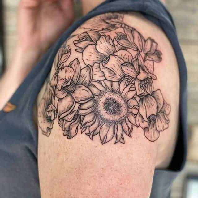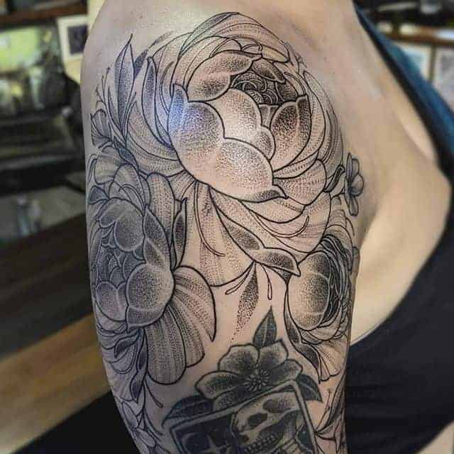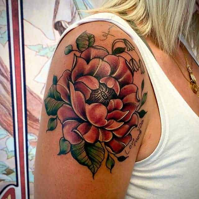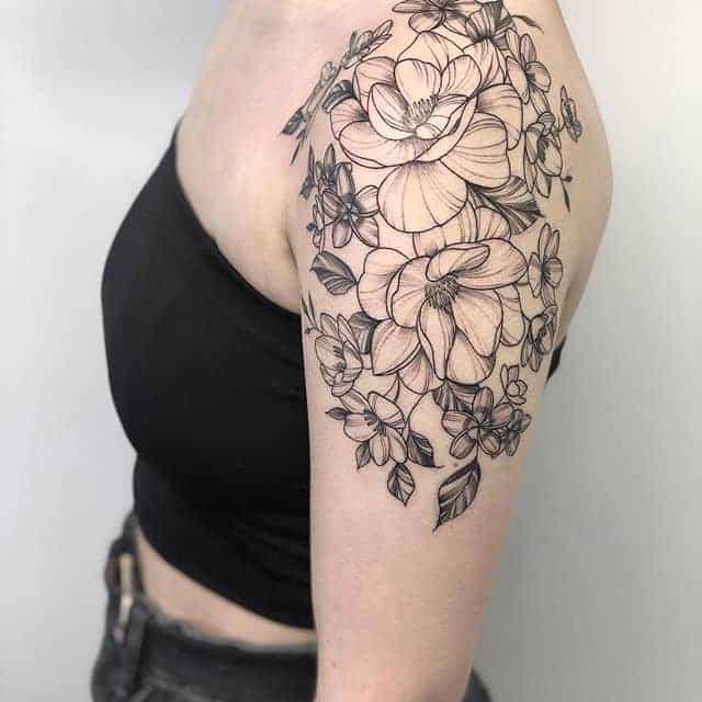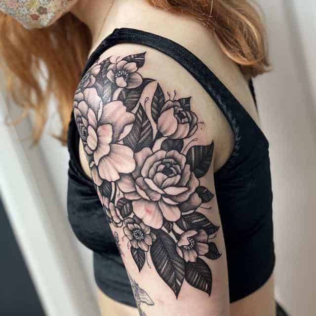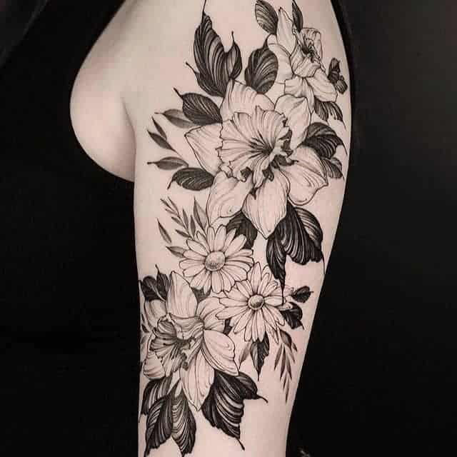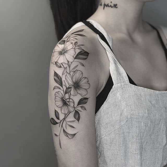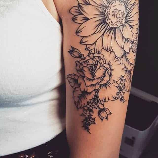 Головне значення тату на плечі у дівчат з квітами – це відданість любові, радості, свіжості, єднанню і життєвій силі. Але в залежності від сенсу, який закладає в малюнок власниця, татуювання може символізувати і розбите серце. Або скорботу від втрати близької людини. У мистецтві натільних малюнків кожен елемент володіє унікальним значенням.