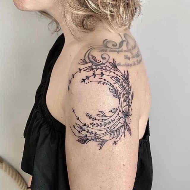 - Коло – символ вічного повторення і балансу природи. Втілює в собі сонячне світло, білосніжну красу Місяця, циклічність часу (згадайте про циферблат і гороскоп), протилежні початку інь і ян. Коло однаково виглядає з усіх боків, спереду і ззаду. Залежно від інших елементів, татуювання на плечі набуває все більш і більш цікавих значень.
