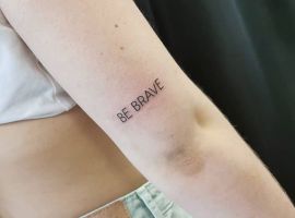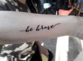 Якщо великі зображення вибирають дівчата сміливі, епатажні, то скромна фраза на малопомітній ділянці тіла підійде для будь-якій жінці. Вона виглядає витончено і естетично. Напис легко заховати від поглядів оточуючих за допомогою годинника, манжета, браслета, шарфика. Це актуально, якщо жінка працює там, де належить мати строгий зовнішній вигляд.